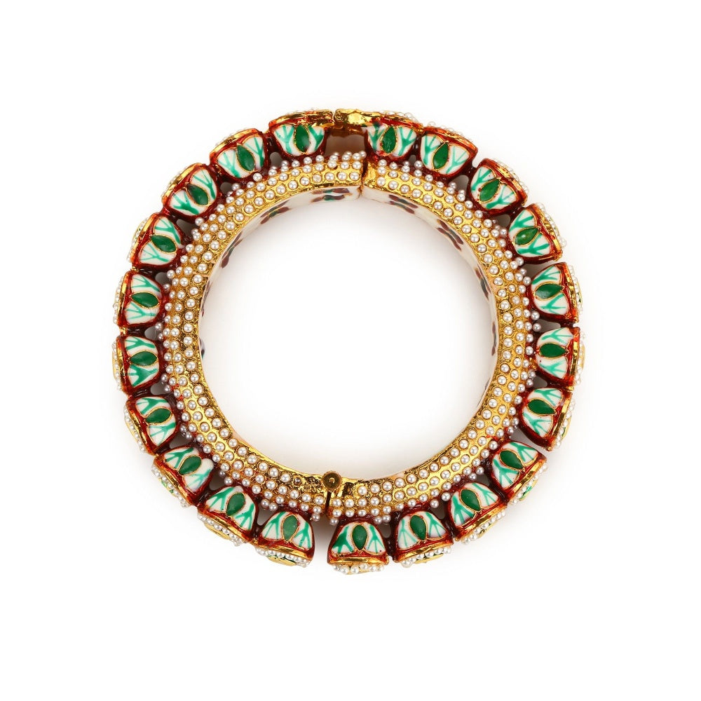 Ruby Raang Studio Green Enamelled Gold Plated Kundan Bangle