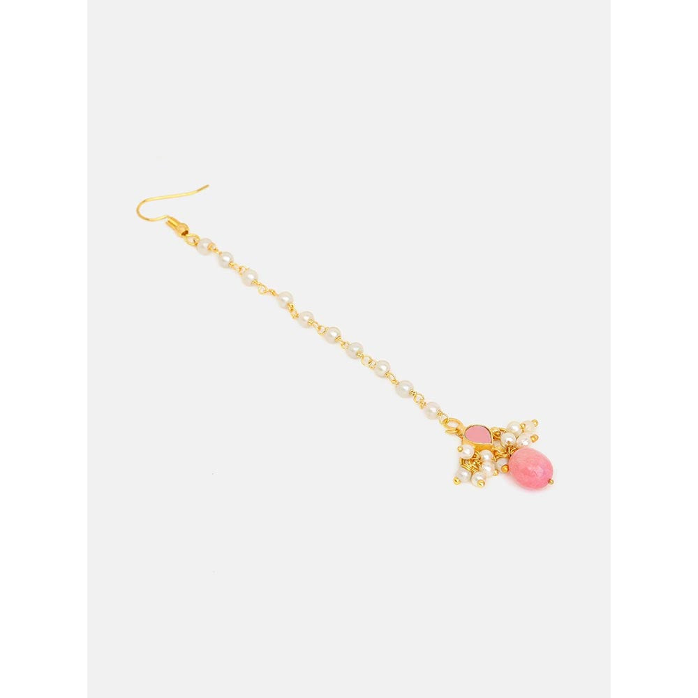 Description : Elegant, Light, And Full Of Warmth-This Jewellery Set Feels Like A Little Celebration You Can Wear.With Its Warm Gold Tones And Delicate Pink Accents, It Brings A Gentle Festive Charm That S Perfect For Celebrating Meaningful Moments. It S The Kind Of Jewellery That Doesn T Overpower Your Look-It Simply Blends In Beautifully And Enhances It.The Subtle Pink Drop Adds A Touch Of Colour That Feels Fresh And Feminine, Catching The Light With Every Small Movement.The Earrings Are Perfectly Balanced With The Maang Tikka That Is So Beautifully Crafted.
