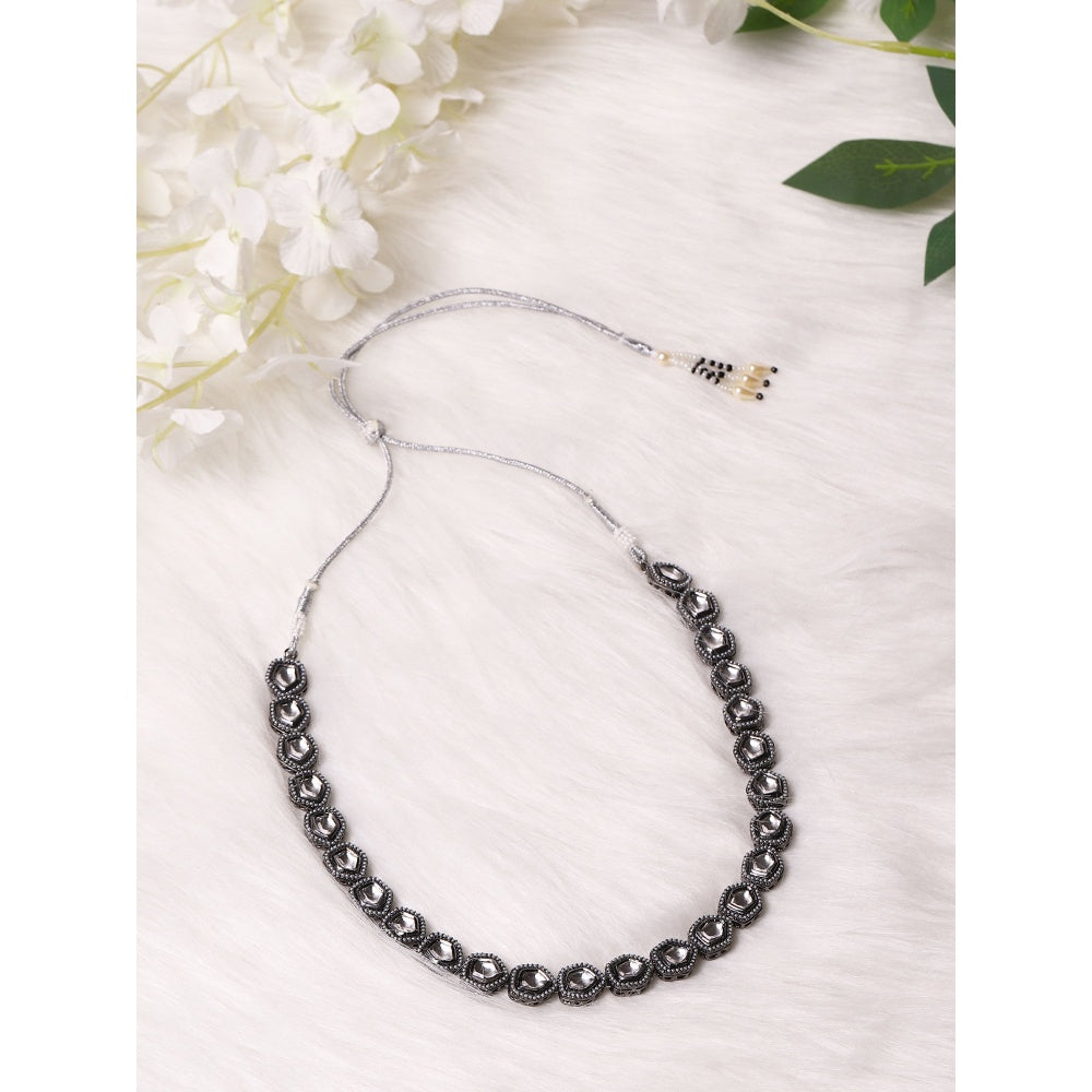 Ruby Raang Studio Silver Kundan Neckpiece With Pearls