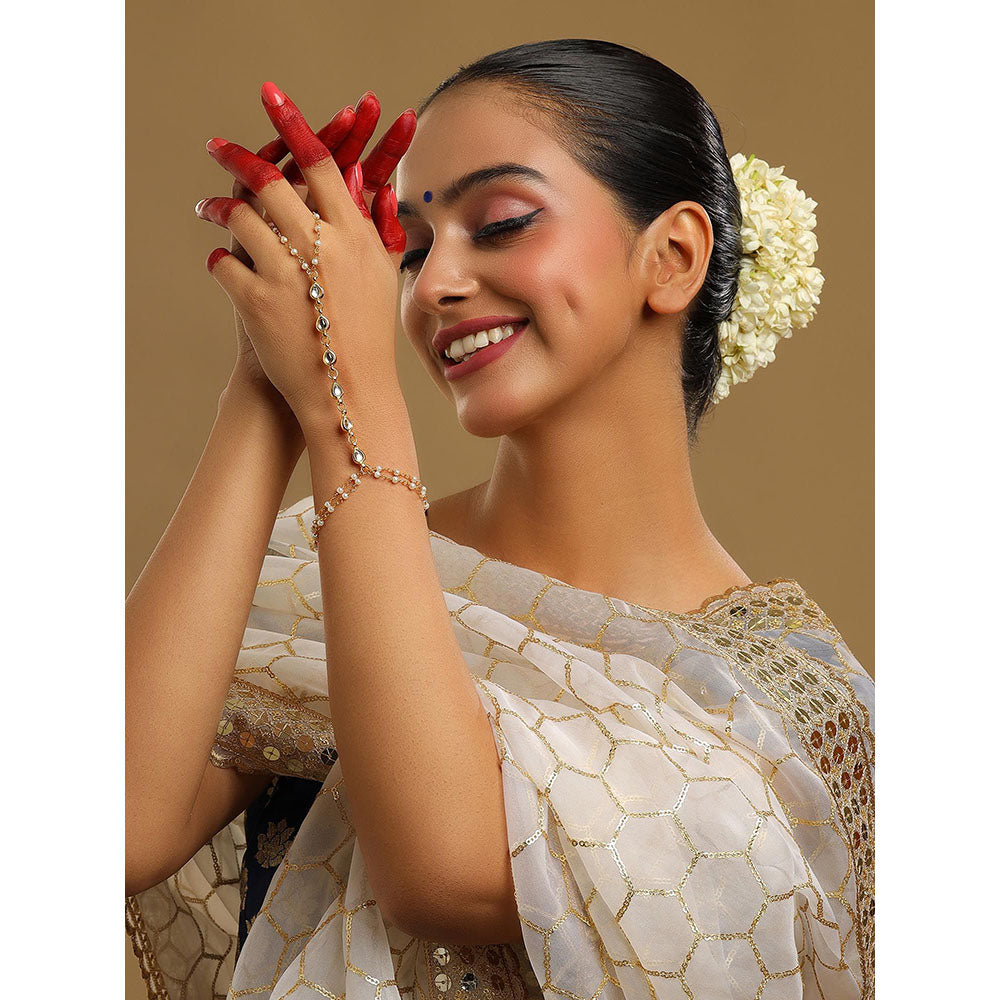 Ruby Raang Studio White Brass Gold Plated Kundan Hathphool