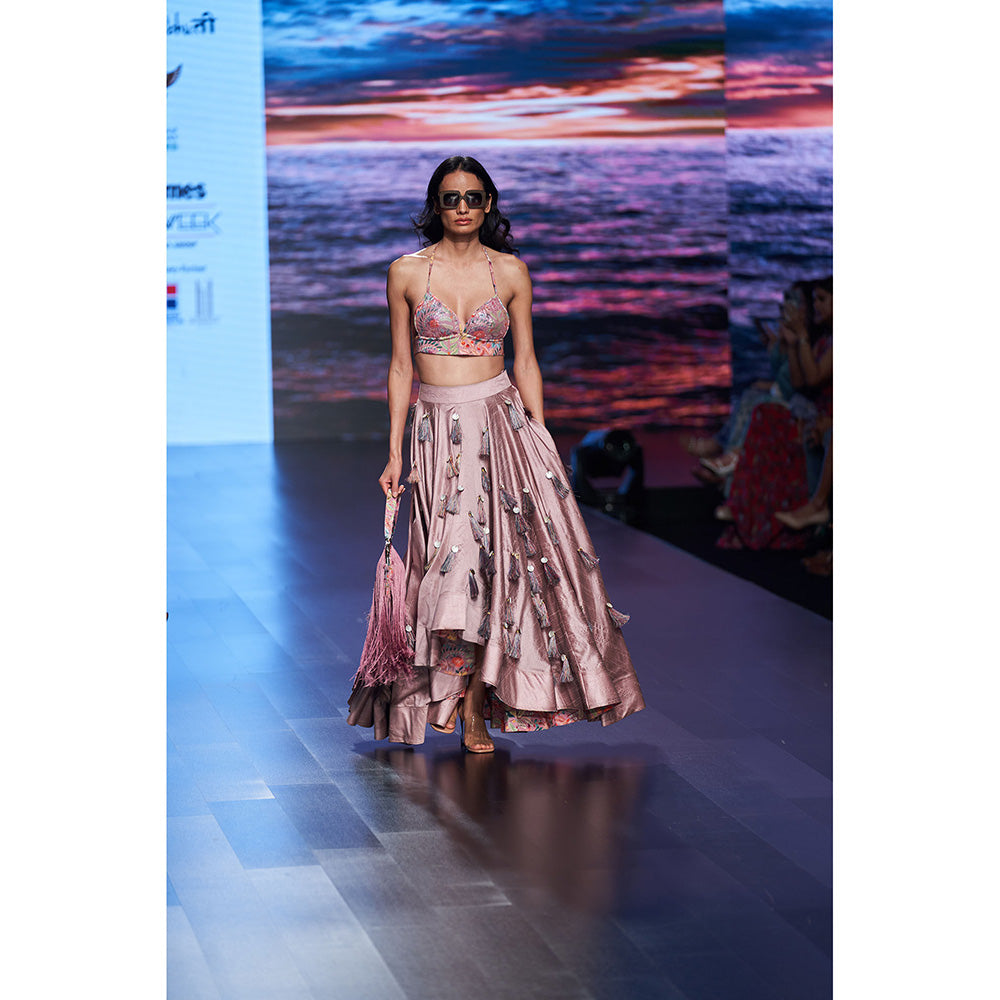 RV Pret Dusty Rose Plunge Detailed Blouse with Asymmetric Long Skirt (Set of 2)