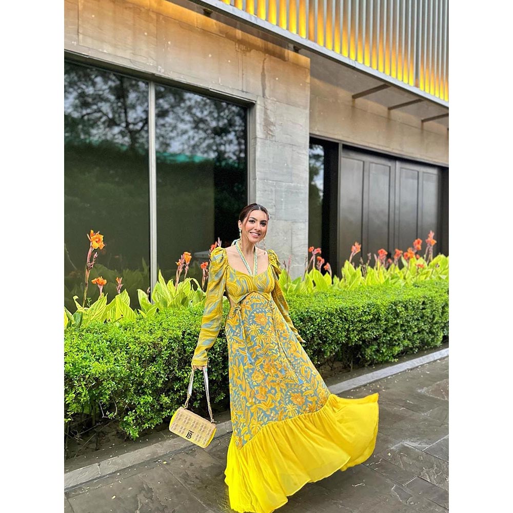 Description : Emerce in the western vibes with this yellow Co-ord Set by RV Pret. Crafted from high quality crepe, it features pull on closure and printed pattern along with full sleeves & square neck. Pair it with shoes and glasses to complete your ensemble.