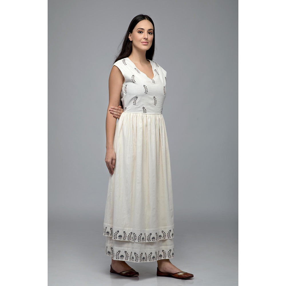Description : Enhance your style this season with this S & V designs Blue Double Layer Embroidered Sleeveless Maxi Dress. Crafted from breathable fabric, it features an elegant design and offers exceptional comfort. Pair it with heels and minimal jewelry for a chic appearance.