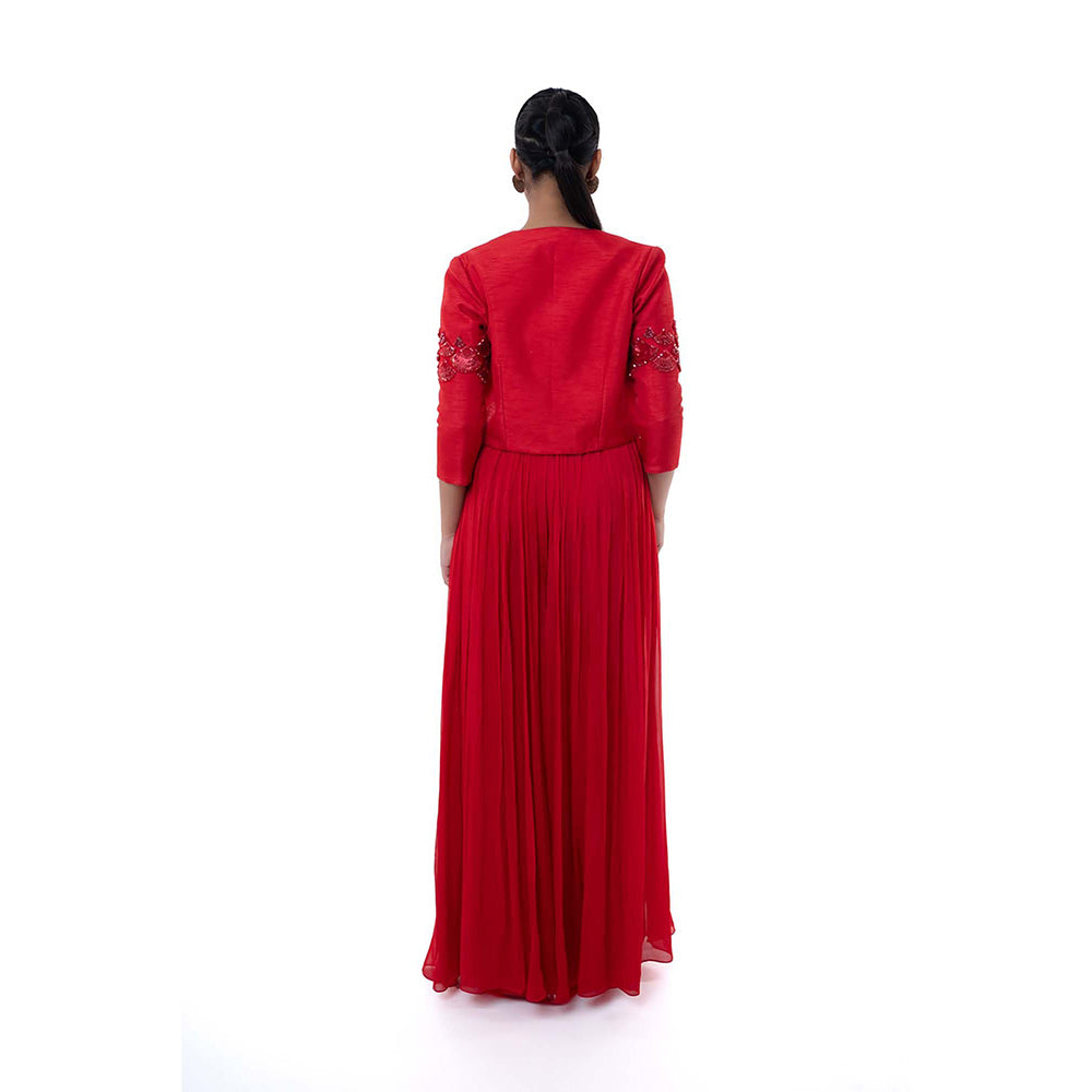Red Rosa Bustier with Crop Jacket and Palazzo (Set of 3)