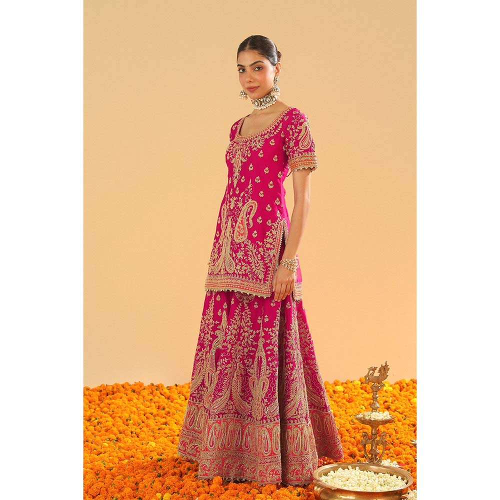 Sheetal Batra Ishwar Hot Pink Kurti with Sharara and Dupatta (Set of 3)