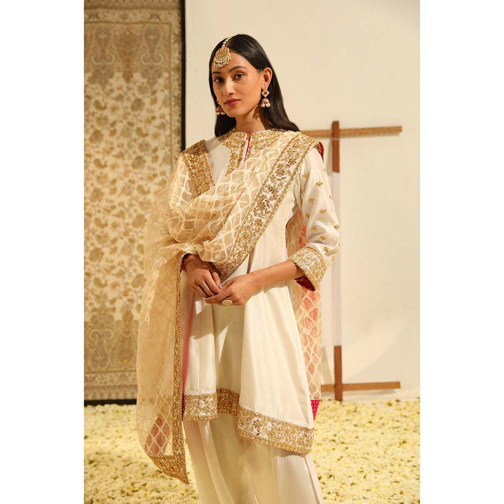 Sheetal Batra Ivory Intezaar Short Kurta with Salwar and Dupatta (Set of 3)