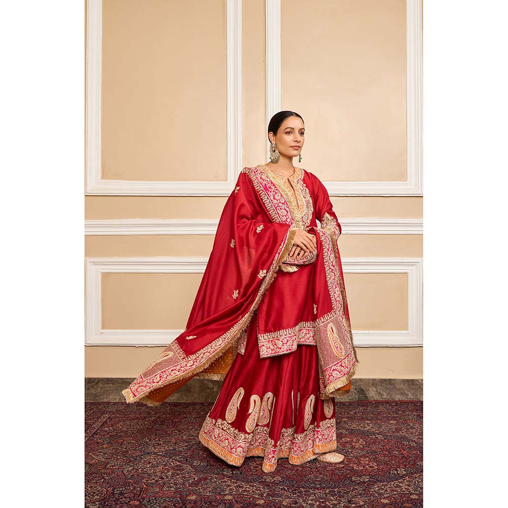 Sheetal Batra Red Kurta With Sharara And Dupatta (Set of 3)