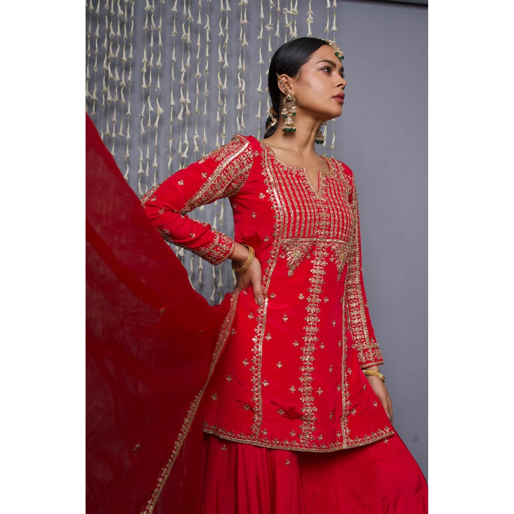 Shweta Dabas Red Sharara with Kurta and Dupatta (Set of 3)