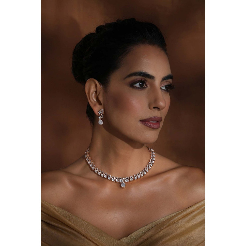 Meghana Rose Gold Polki Necklace with Earrings Set