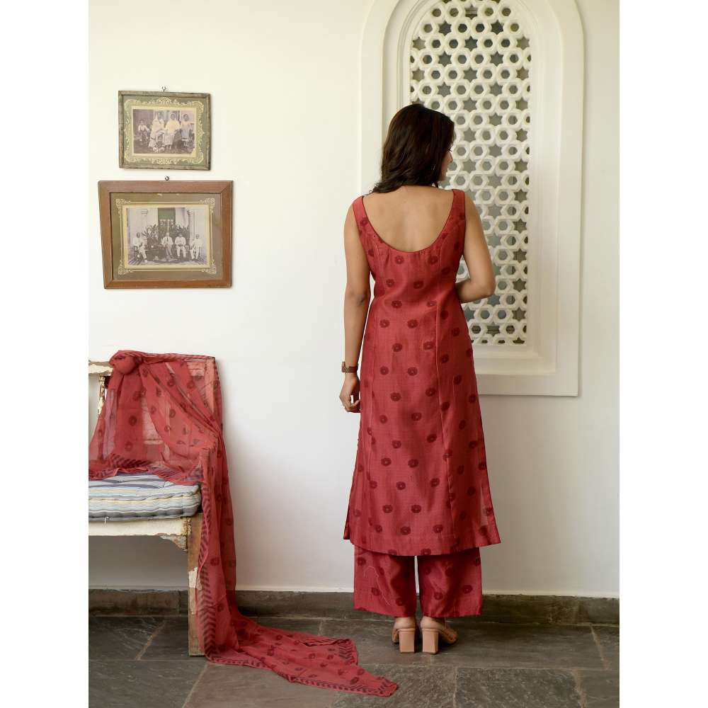 Taro india Rosy Sangria Kurta with Pant and Dupatta (Set of 3)