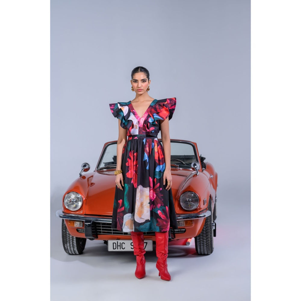 The Dramebaaz Company Paradise Palms Ruffled Dress