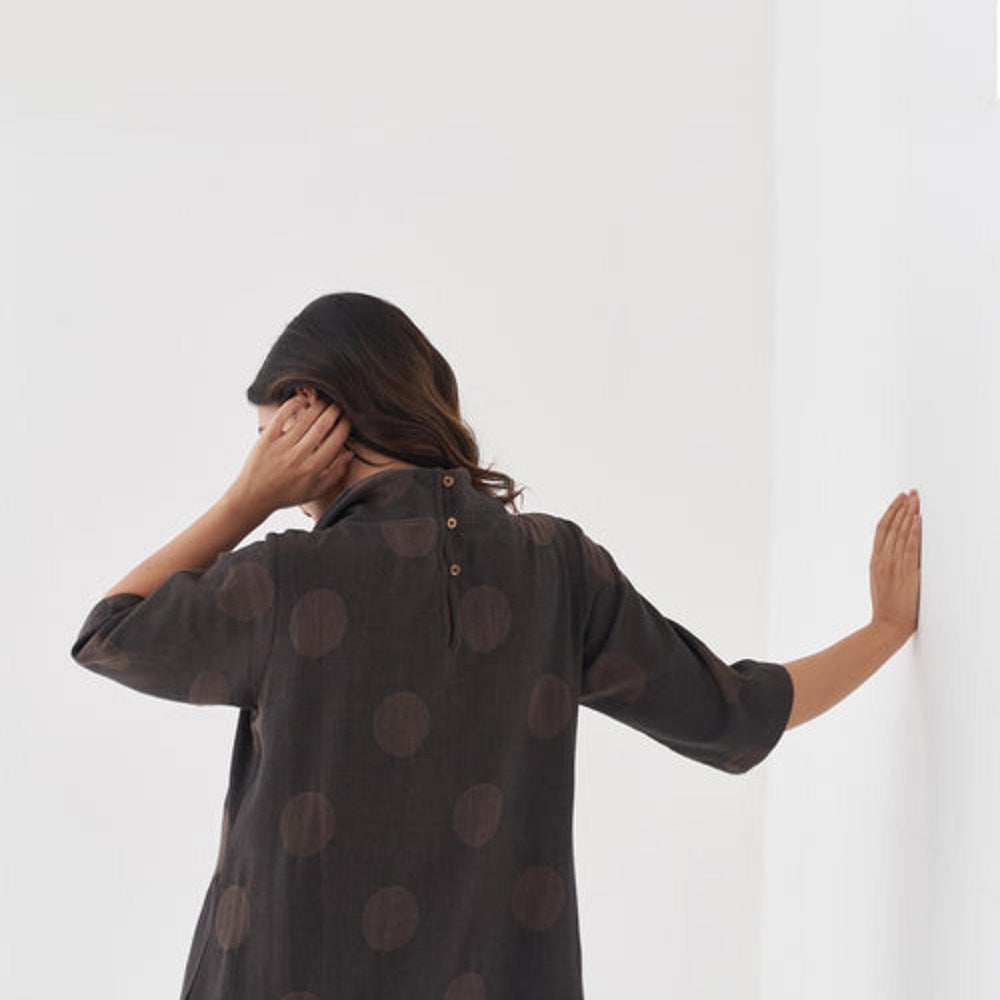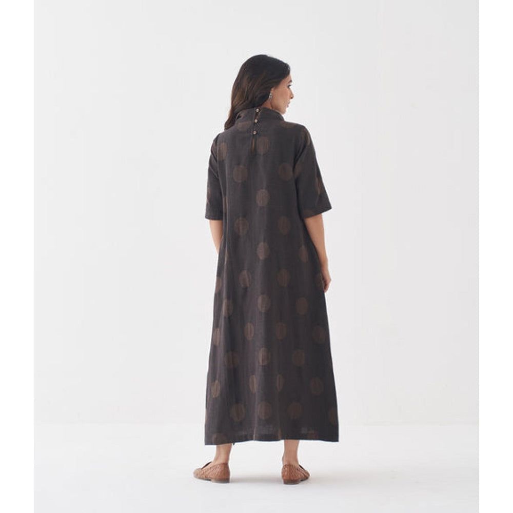 Description : Vaaya Fawn and Black Polka Dot Cowl Neck Maxi Dress