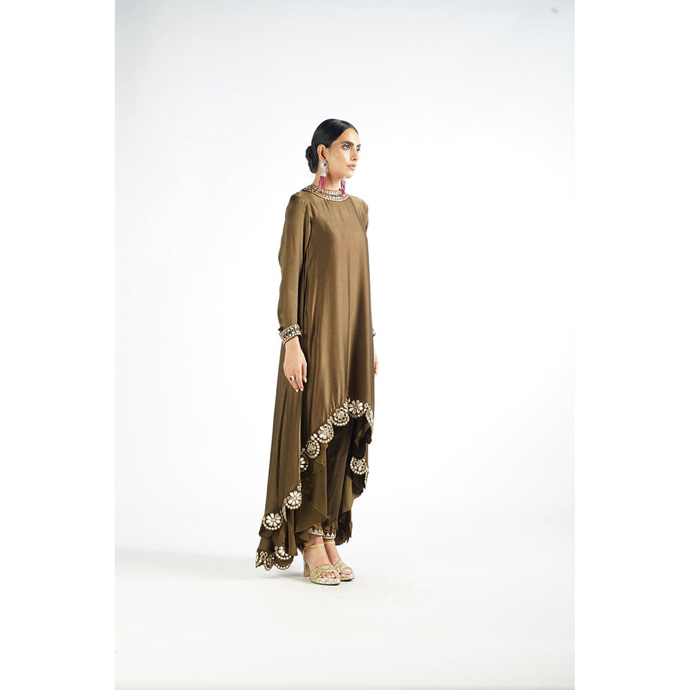 Vvani by Vani Vats Olive Green Scallop Pant Kurta & Pant with Lining (Set of 3)