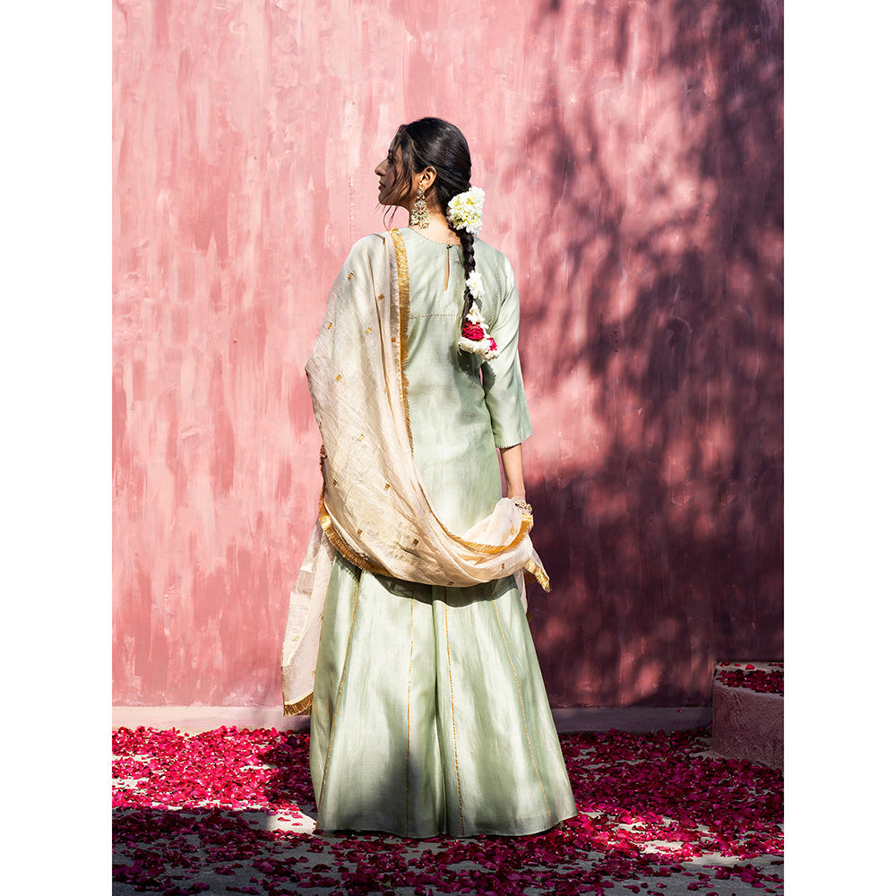 Pista Handloom Chanderi Silk Gota Sharara with Gold Tissue Dupatta (Set of 3)