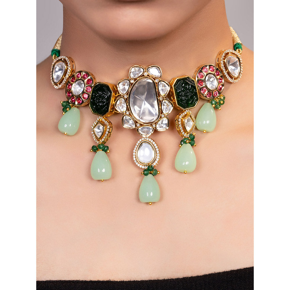 Le Habe Multi Beads Kundan and Mossanite Studded Choker Necklace
