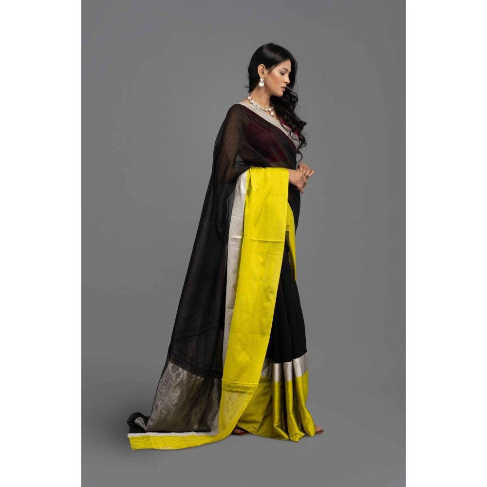 Black Chanderi Silk Banarasi Saree with Unstitched Blouse