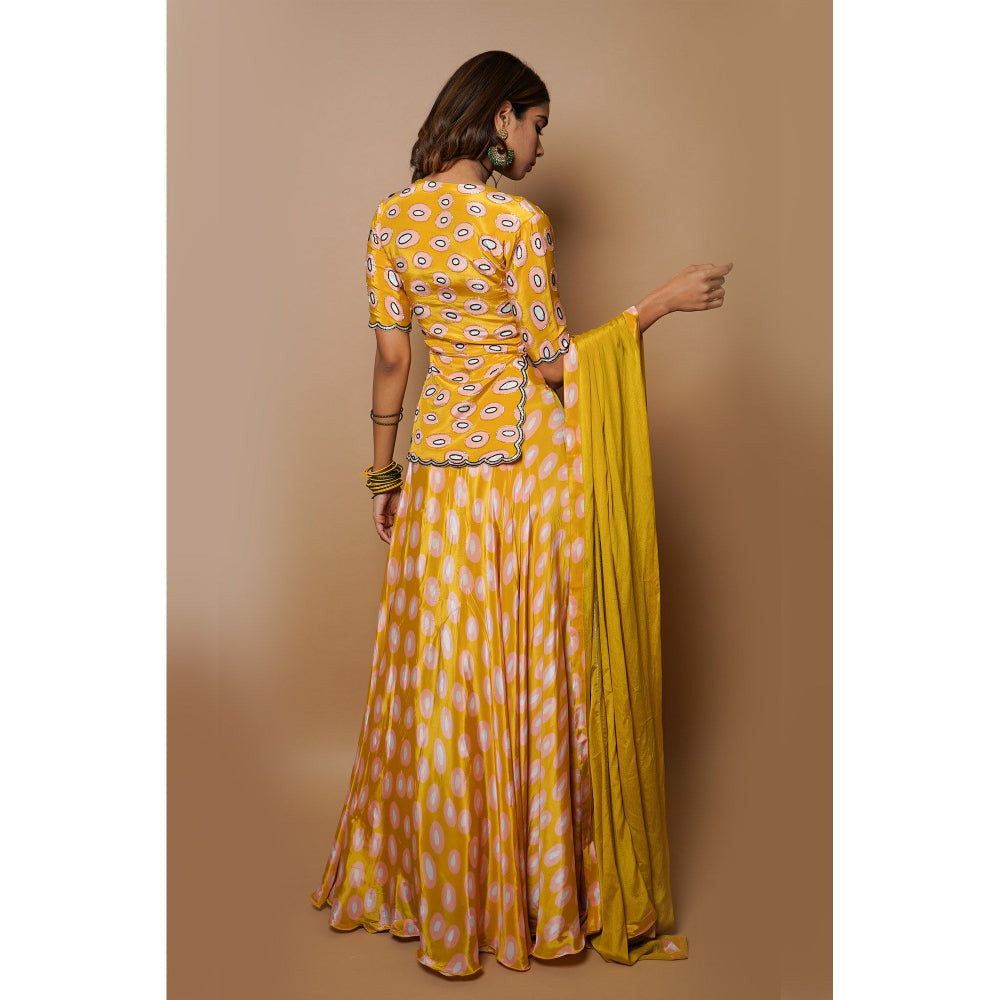 Ahi Clothing Yellow Digital Printed Lehenga (Set of 3)