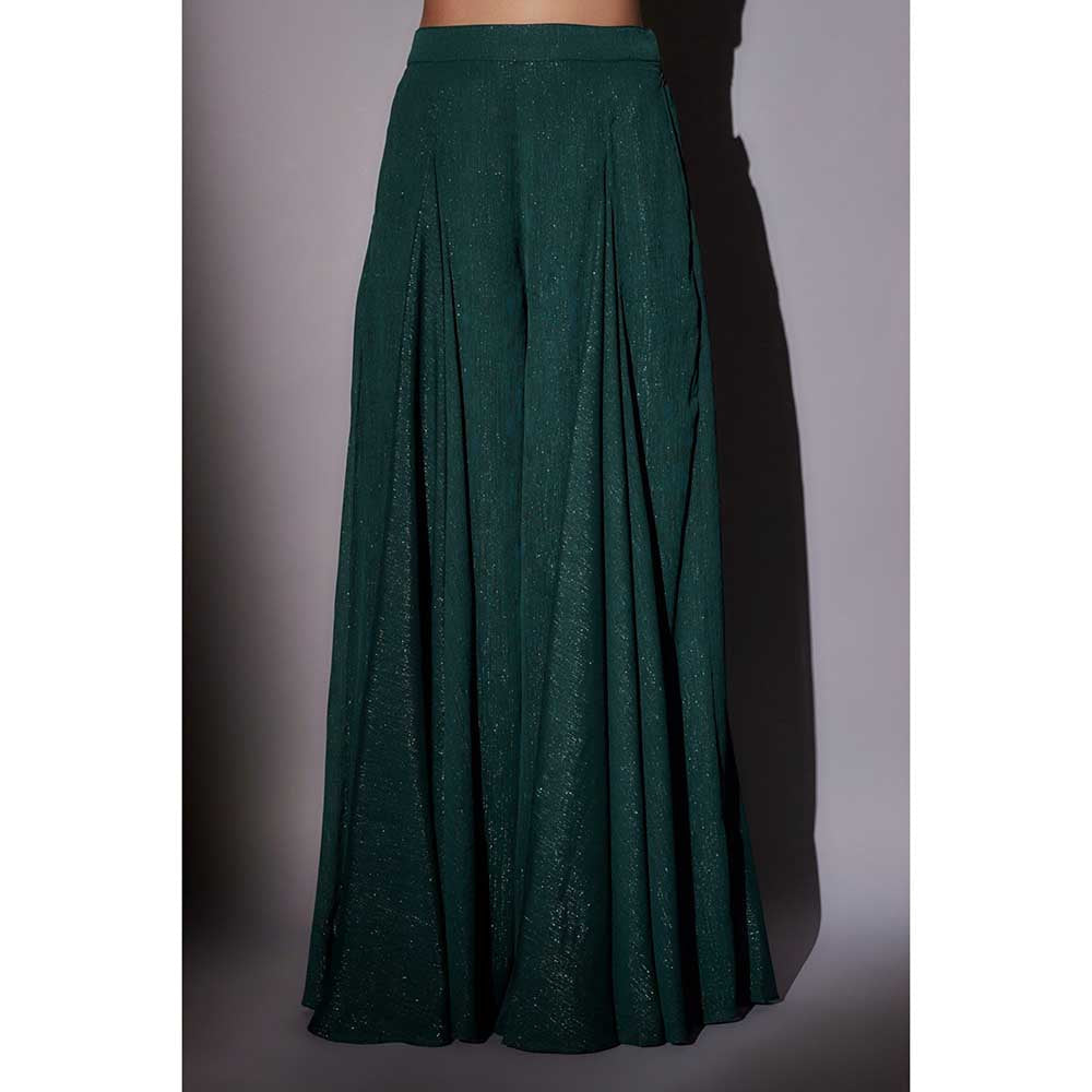 Green Embroidered Jacket with Bustier and Palazzo (Set of 3)