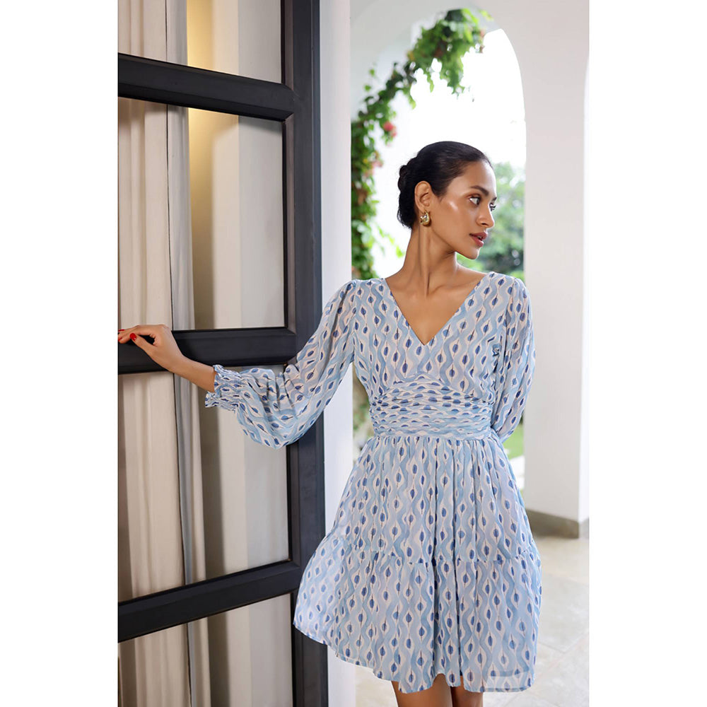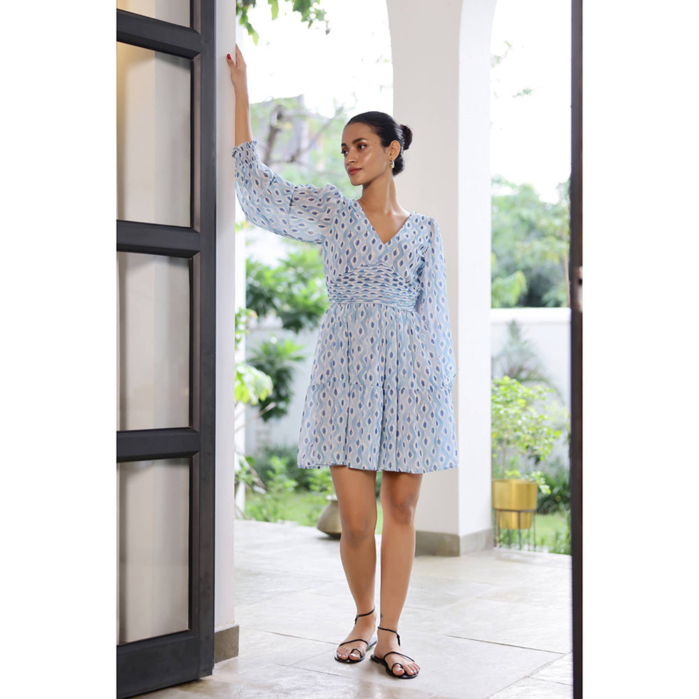 Description : HER STORY Miana, made in printed georgette is the star of the show. When a deep back, a pleated under bust detailing, smocked cuffs, and a gorgeous flow, Miana deserves all the love she is getting! Wear her on your holiday or a cute womens day out, she is 100% awesome. FINER DETAILSV neckline Pin tucks detailing in front Smocking on back waists light gathers on the shoulder & nbsp; Smocked cuff & nbsp; Left side zip closure Length from shoulder to hem: 33 inches Our model is 5'6" and wears a size XS & nbsp; Fabric and wash care: Georgette Dry Clean or gentle hand wash only.