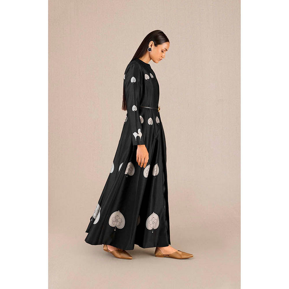 Description : Revamp your wardrobe with this black co-ord set from AMPM. Crafted from chanderi, the top features full sleeves and a mandarin neck. The bottoms are designed with a mid waist and wide legs. Team it with a pair of sandals and minimalistic jewellery to complete the look.