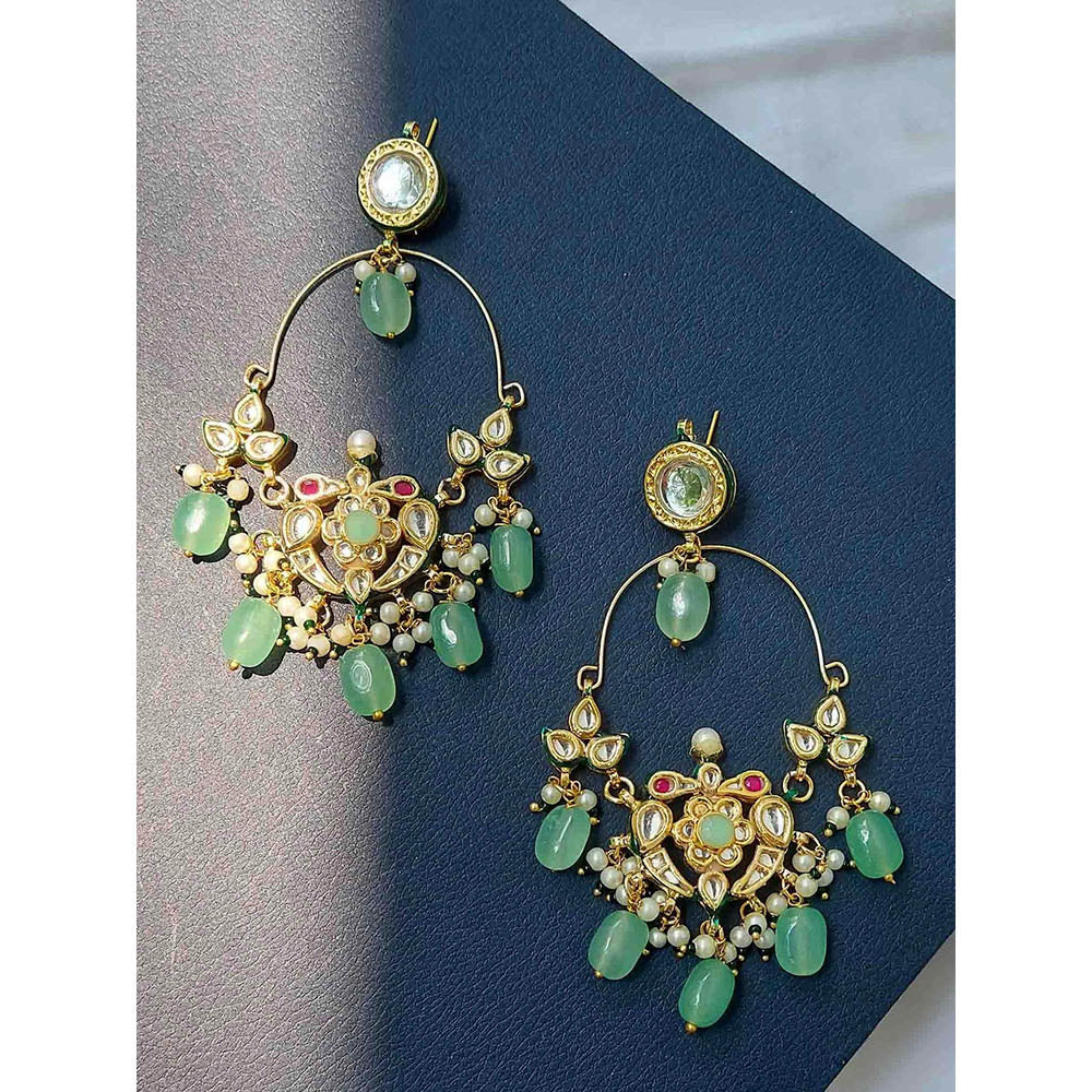 Amreli Jaipur Mint Green Kundan Chandbalis