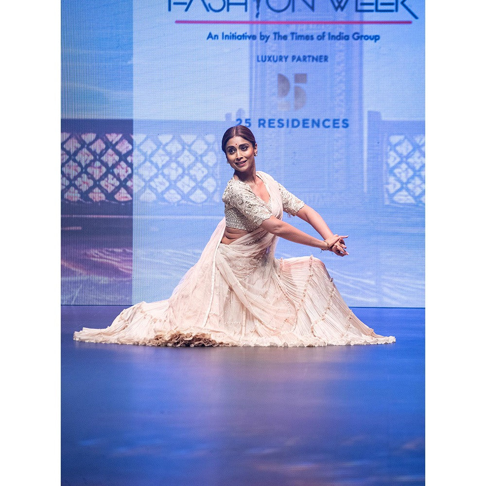 Anu Pellakuru Ivory Kavala Embroidered Lehenga with Blouse and Dupatta (Set of 3)