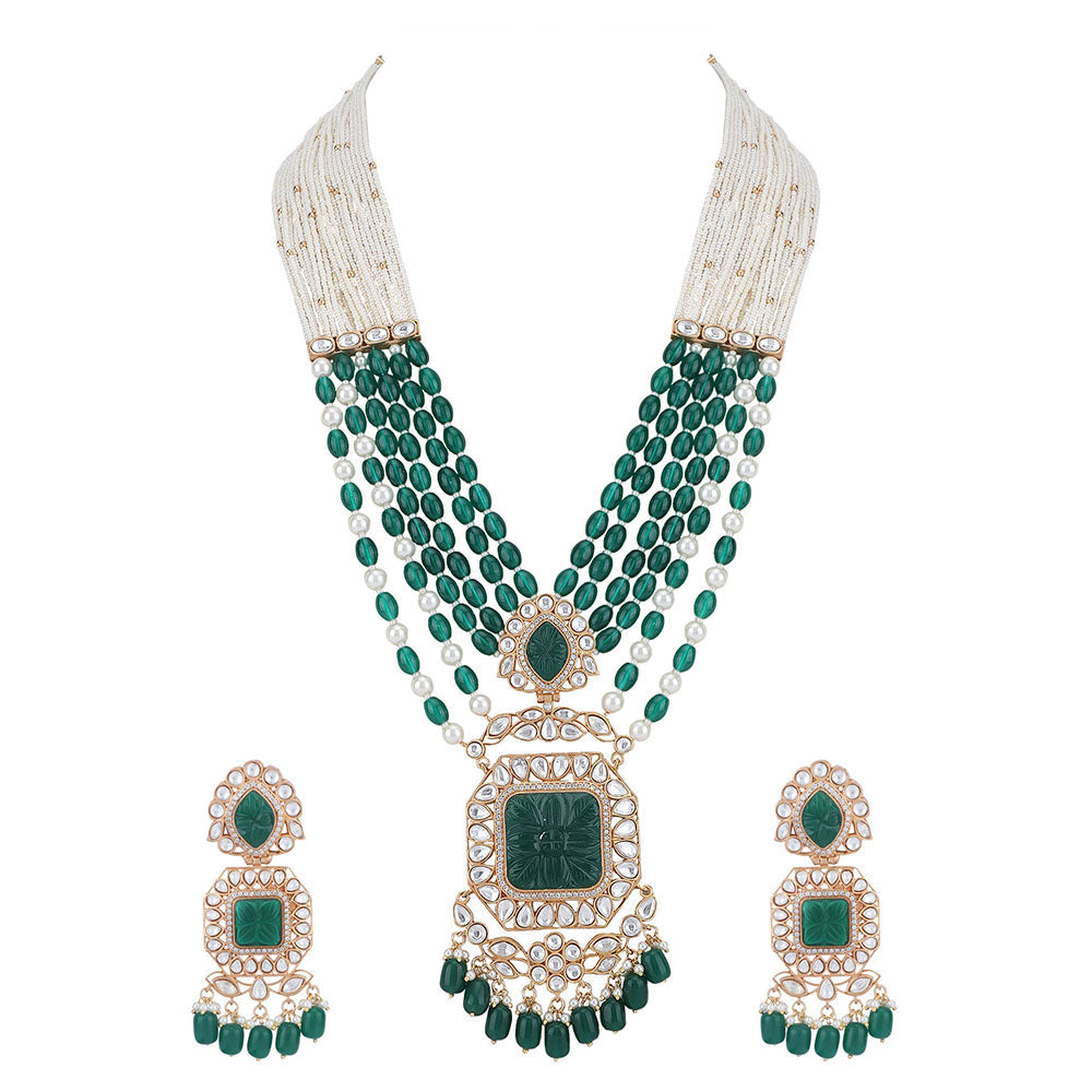 Auraa Trends 22KT Gold Plated Kundan Elegant Green Necklace Set