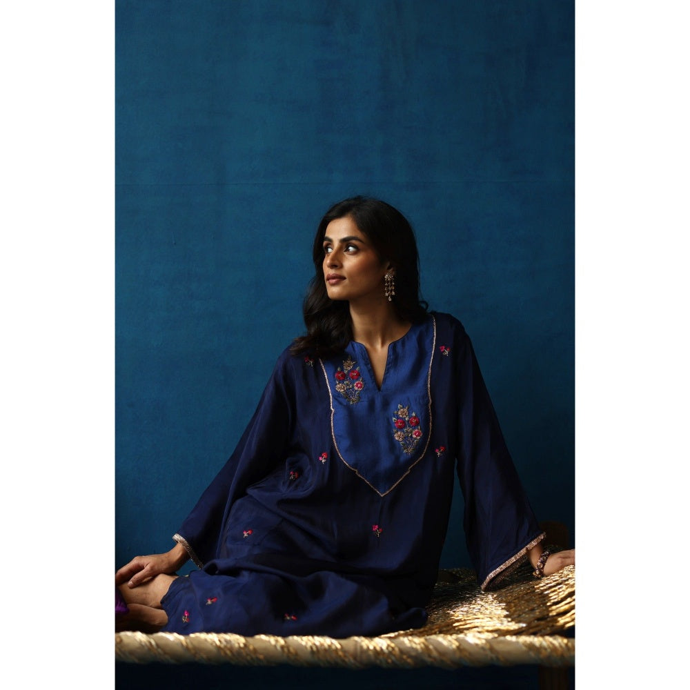Begum Pret Navy Blue Imly Phiran Kurta with Pants (Set of 2)