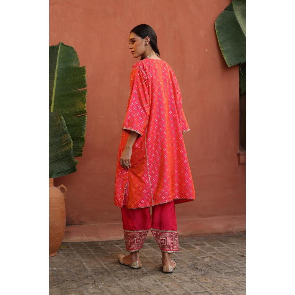 Begum Pret Peach Faris Phiran Kurta with Pant (Set of 2)