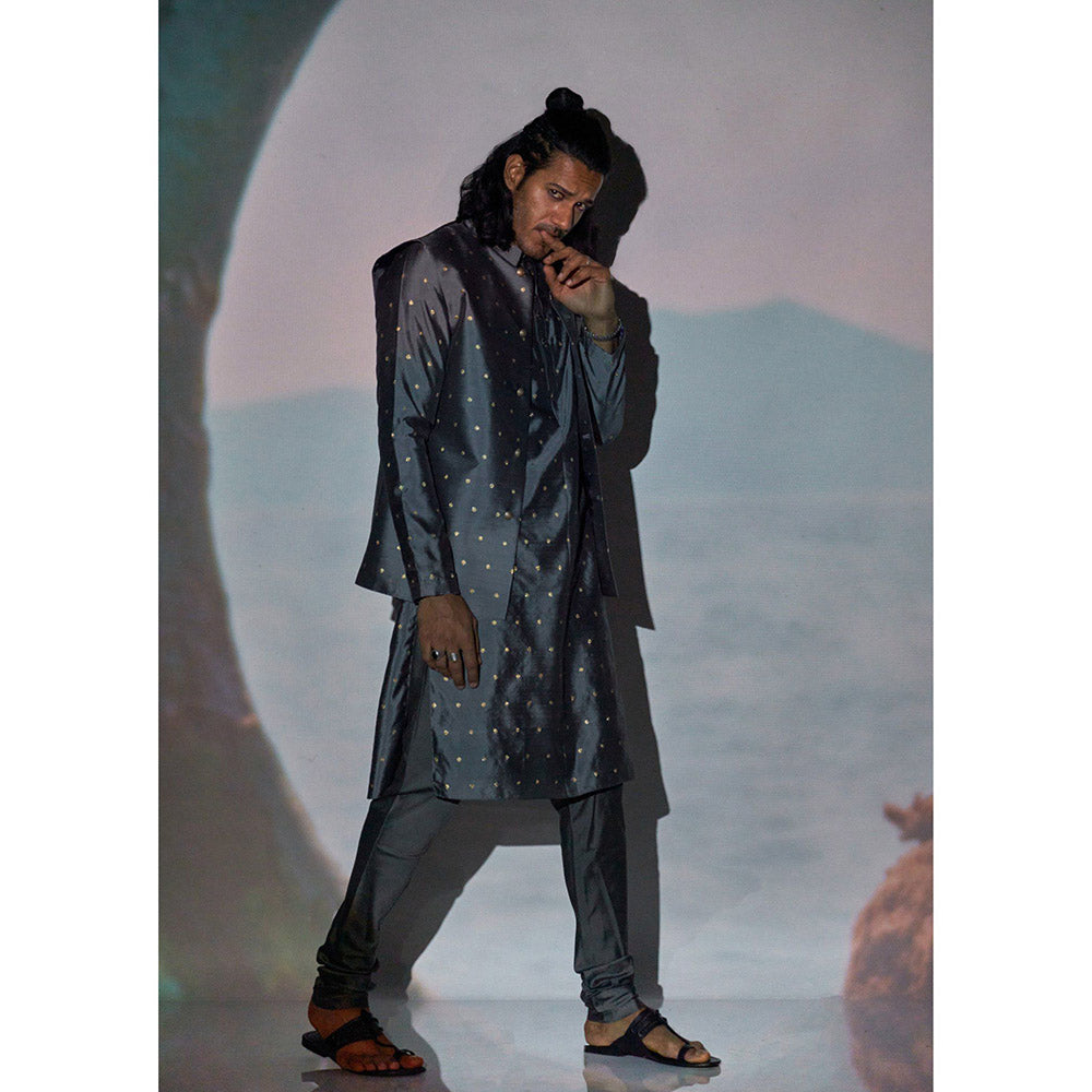 Bubber Blu Calico Clover Bandhi Grey Nehru Jacket