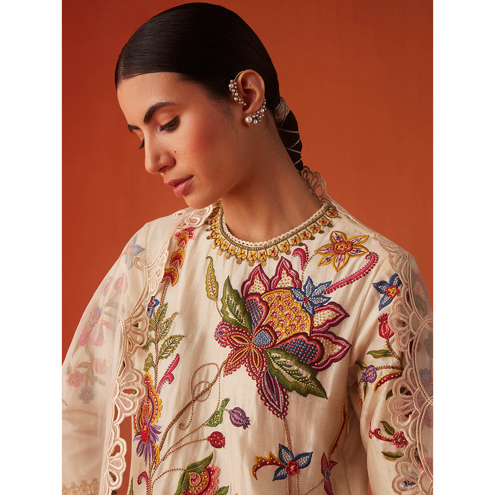 CHANDRIMA Ivory Organza Floral Embroidered Dupatta