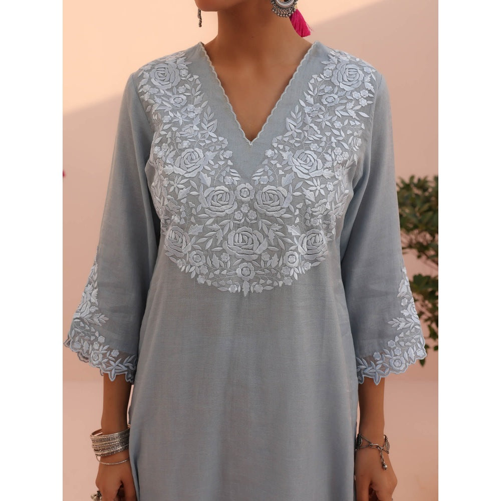 CHARU MAKKAR Blue Kurta with Palazzo and Dupatta (Set of 3)