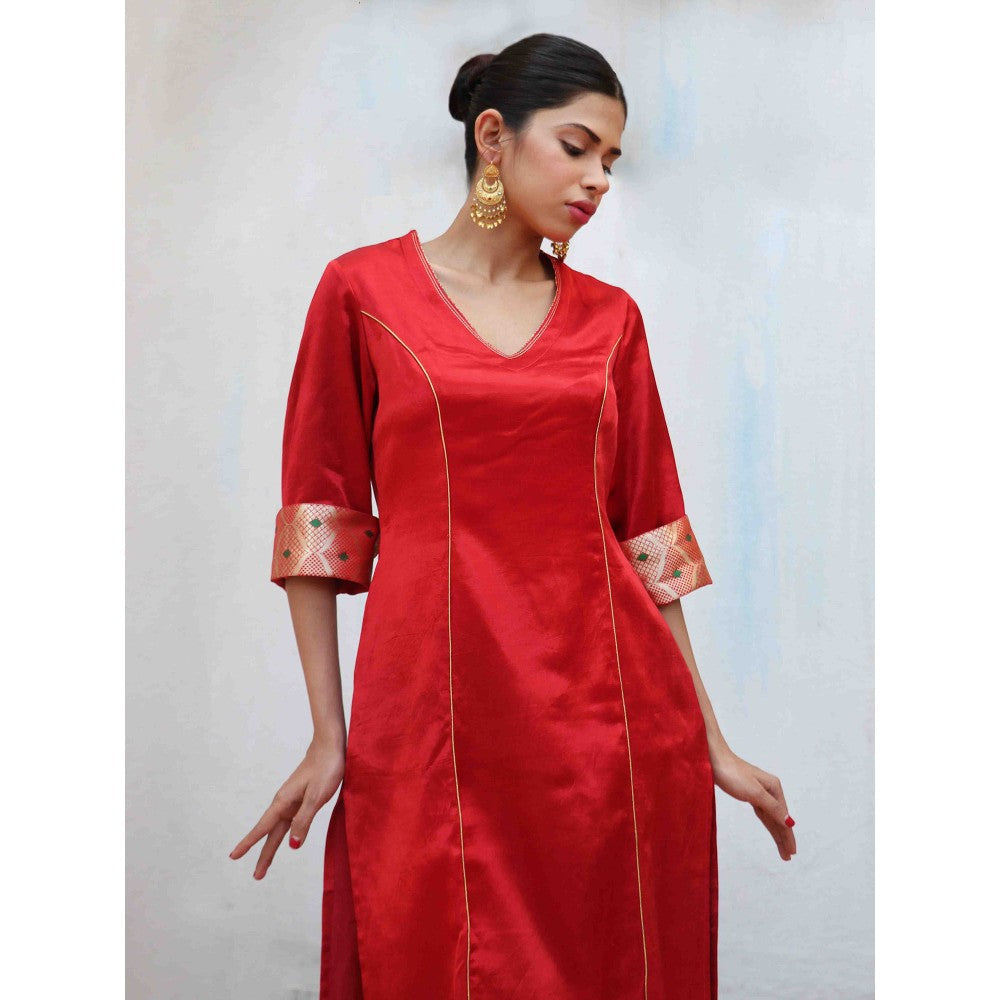 Care Instruction : "- Pure Mashru Silk - Bracade Detailing On Sleeves - Dry Clean Only - Ethically Made In India "