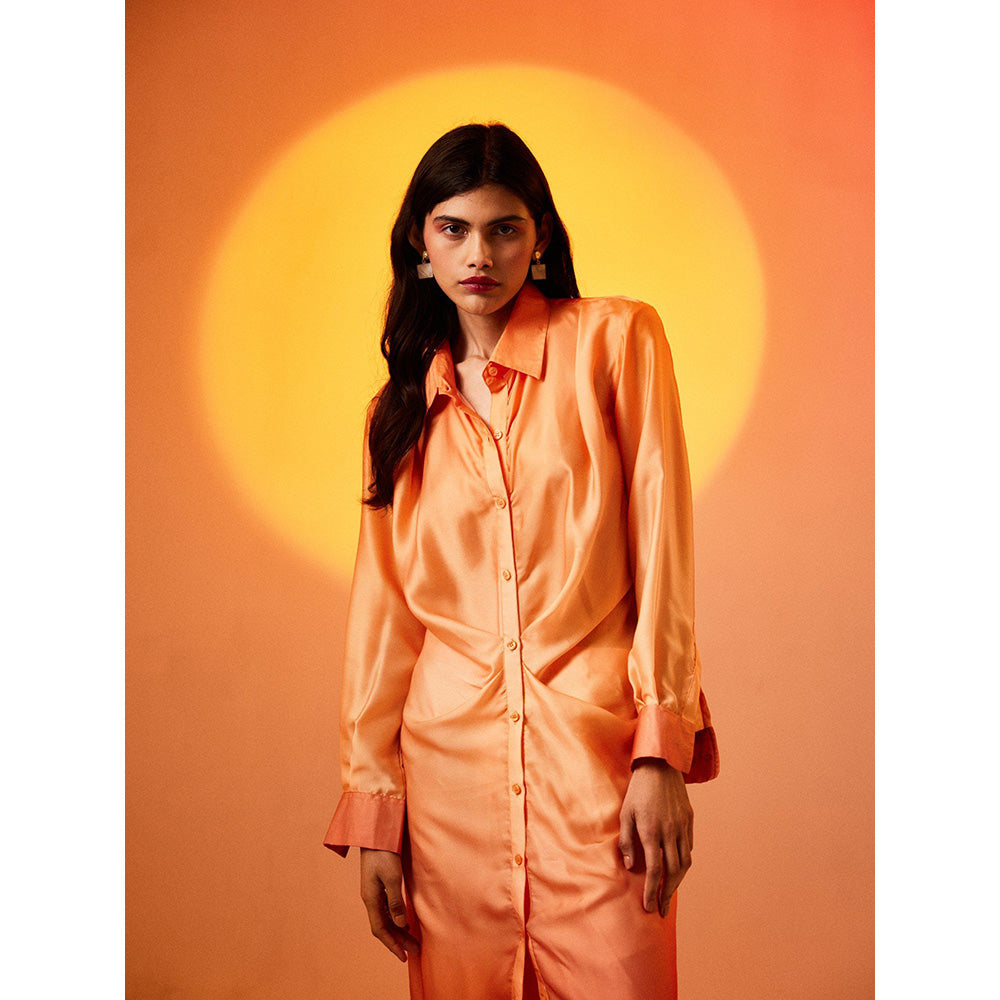 Description : Step into the spotlight with our Echo Mimosa Coord Set , a stunning ensemble that effortlessly blends comfort and style .Revel in the captivating beauty of the orange ombre gradient that flows seamlessly from top to bottom. This set is a celebration of vibrant hues that add a touch of modern flair to your look.The long shirt design exudes sophistication, providing a versatile option for various occasions. Its front buttons, collar and length adds a graceful touch, making it a standout piece in your collection .The set includes perfectly matching pants, completing the look with a cohesive and polished appearance. The comfortable fit ensures freedom of movement without compromising on style..Crafted from high-quality fabric, this set ensures comfort throughout the day. The breathable material allows you to move with ease while maintaining a fashionable edge.