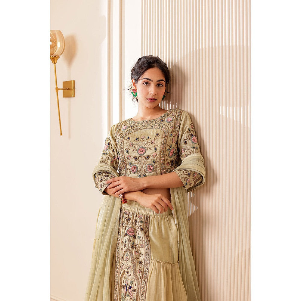 Firann By Shaheen Beige Lehenga with Blouse and Dupatta (Set of 3)