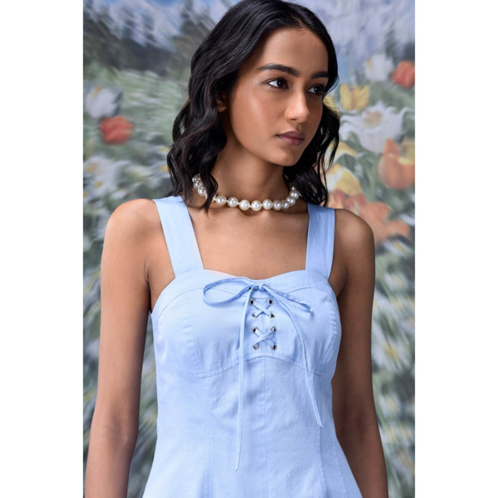 Featuring Cotton Lace Up Slim Fit Dress In Light Blue, A Structured Bodice That Contours The Torso, Cinching The Waist And Enhancing The Body'S Natural Silhouette.