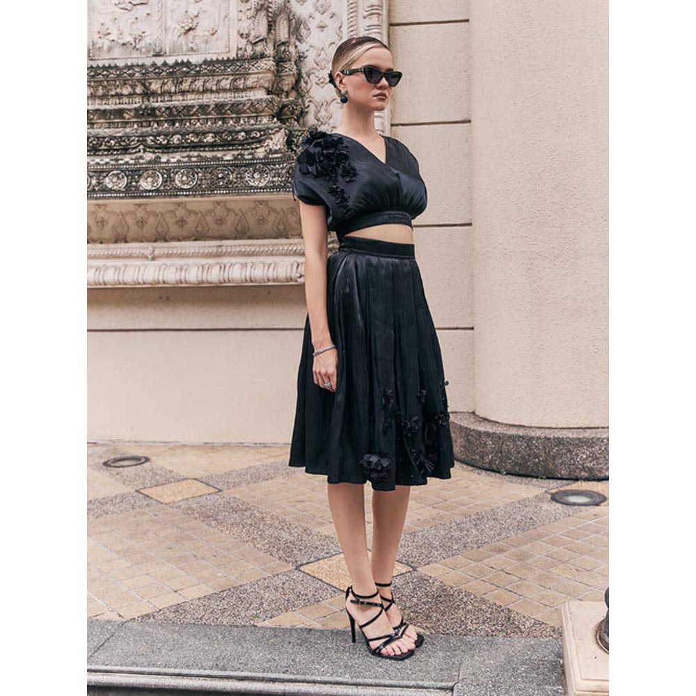 Blake Organza Applique Floral Crop Top - Black