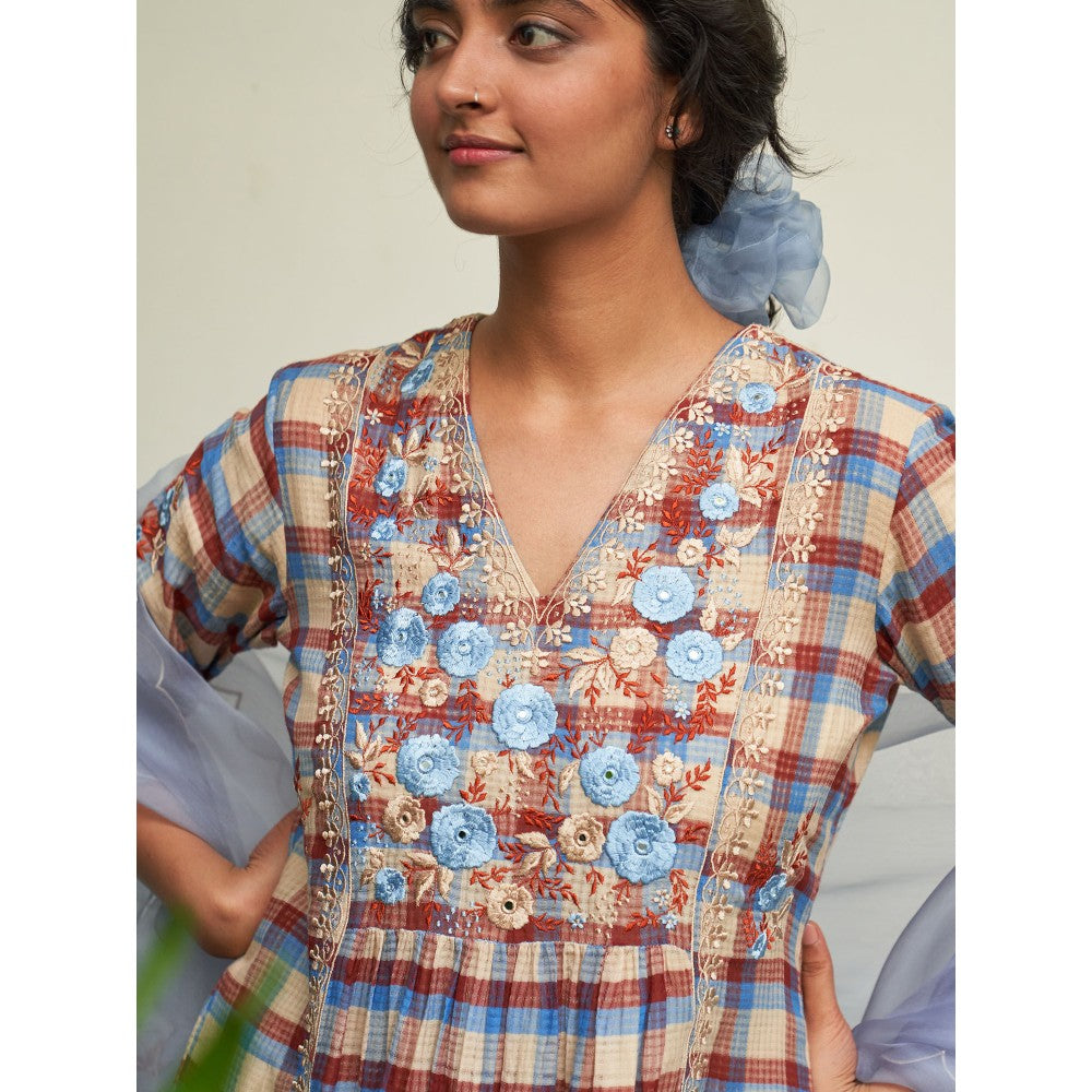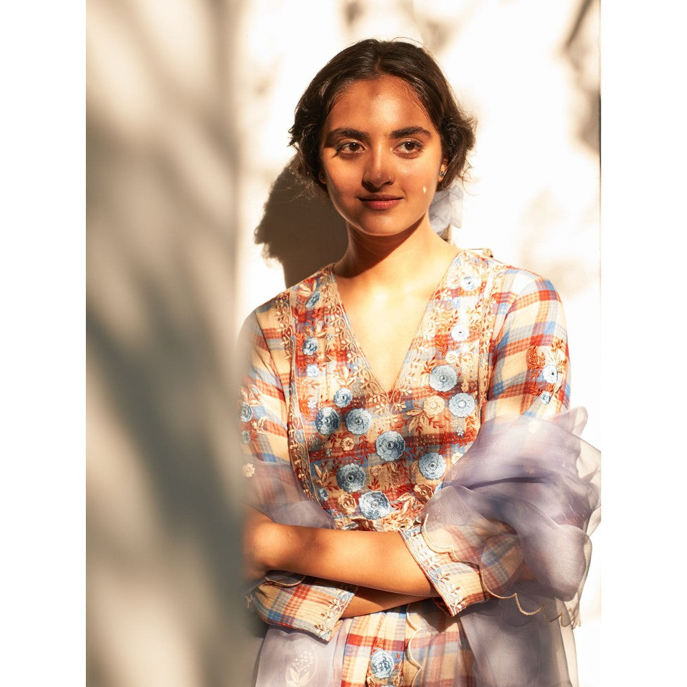 Description : Mangal giri hand woven missing checks cotton kurta and pants with resham buti mirror work detailing. Dupatta has resham buti with scallop detailing. Tailored to sartorial perfection from premium quality fabric, it assures a soft and soothing touch against the skin. The exquisite silhouette adds to its appeal.