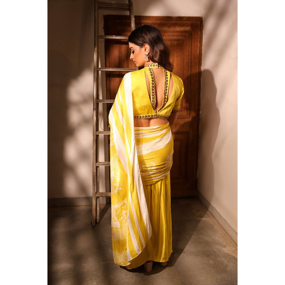 Label Simran Kochher Yellow Marigold Melody Saree with Stitched Blouse