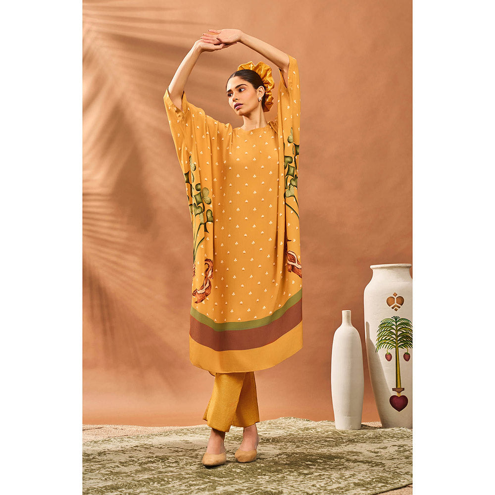 Masaba Yellow Spades Blossom Kaftan with Pant (Set of 2)