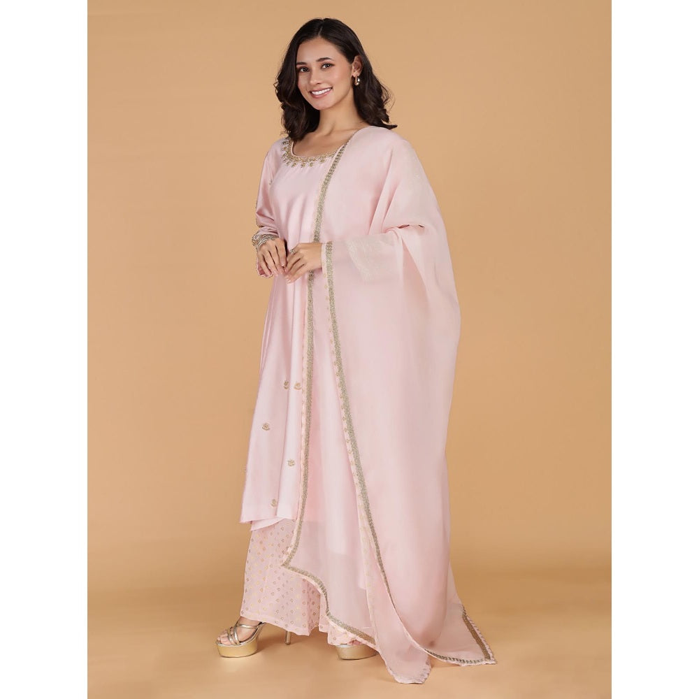 MILU MADAN Light Pink Katan Silk Kurta with Sharara and Dupatta
