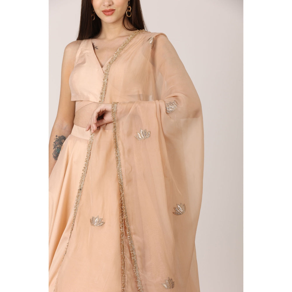NAMAH BY PARUL MONGIA Beige Salmon Solid Blouse with Lehenga and Dupatta (Set of 3)
