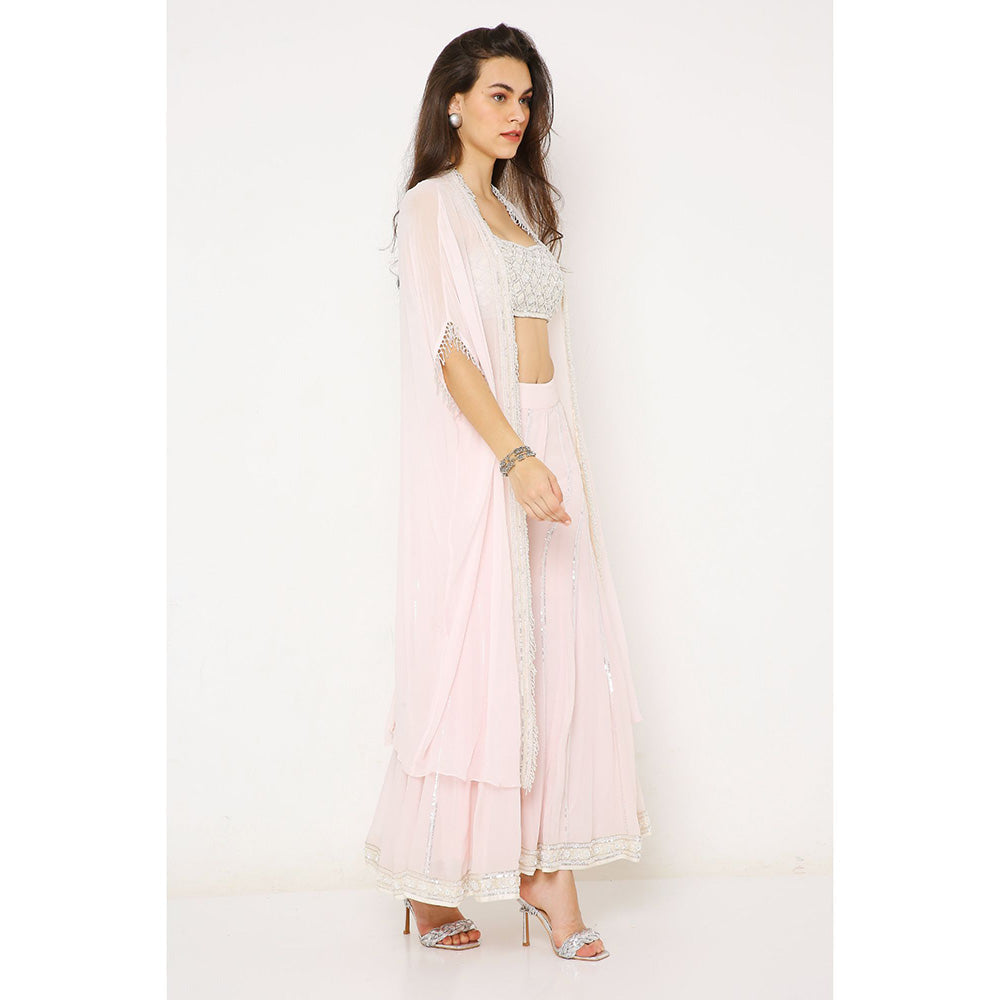 Candy Pink Georgette Embroidered Bustier with Cape and Sharara (Set of 3)