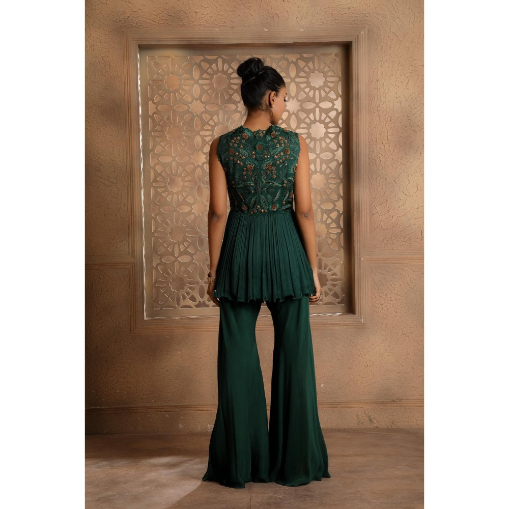 Green Pankhi Peplum Top with Sharara (Set of 2)