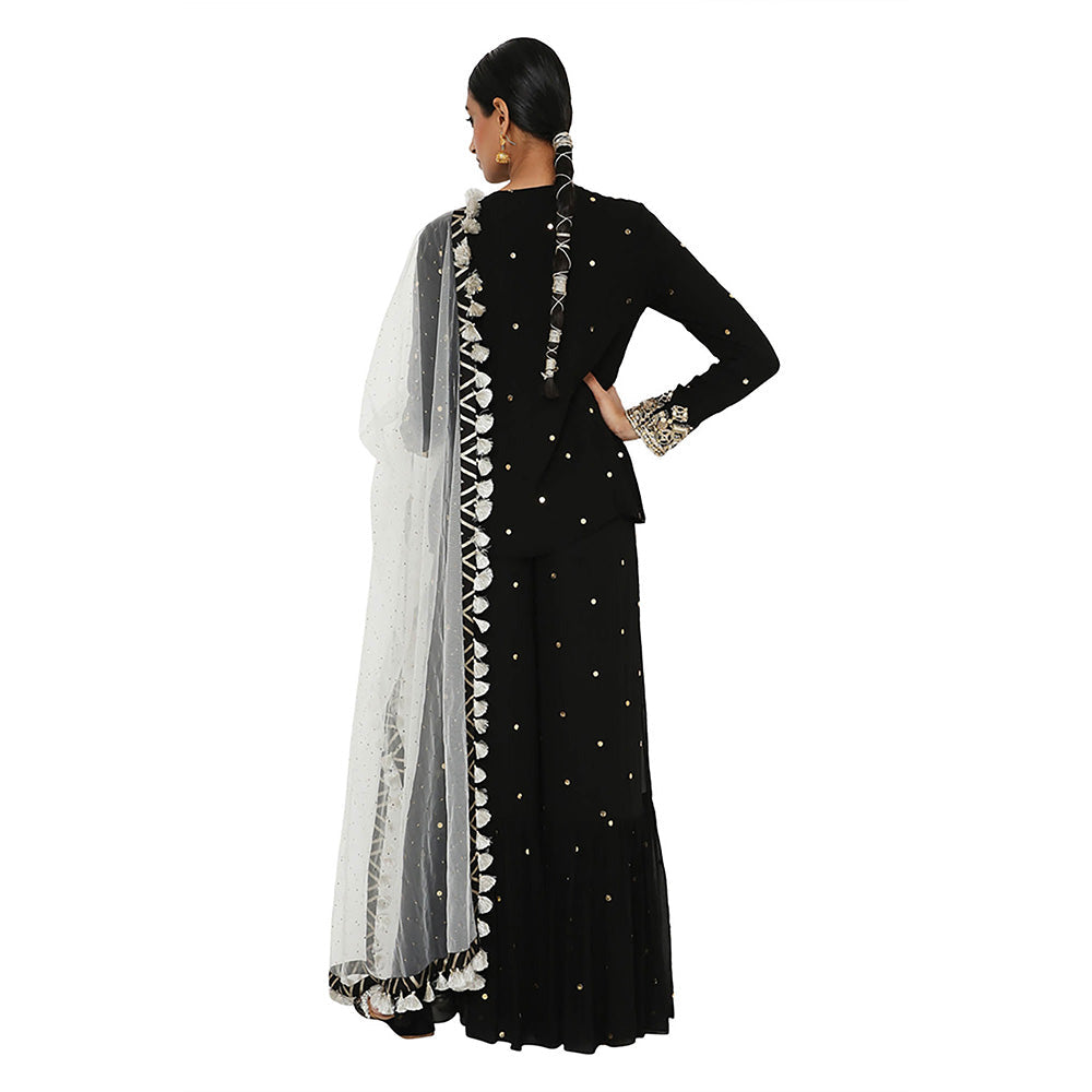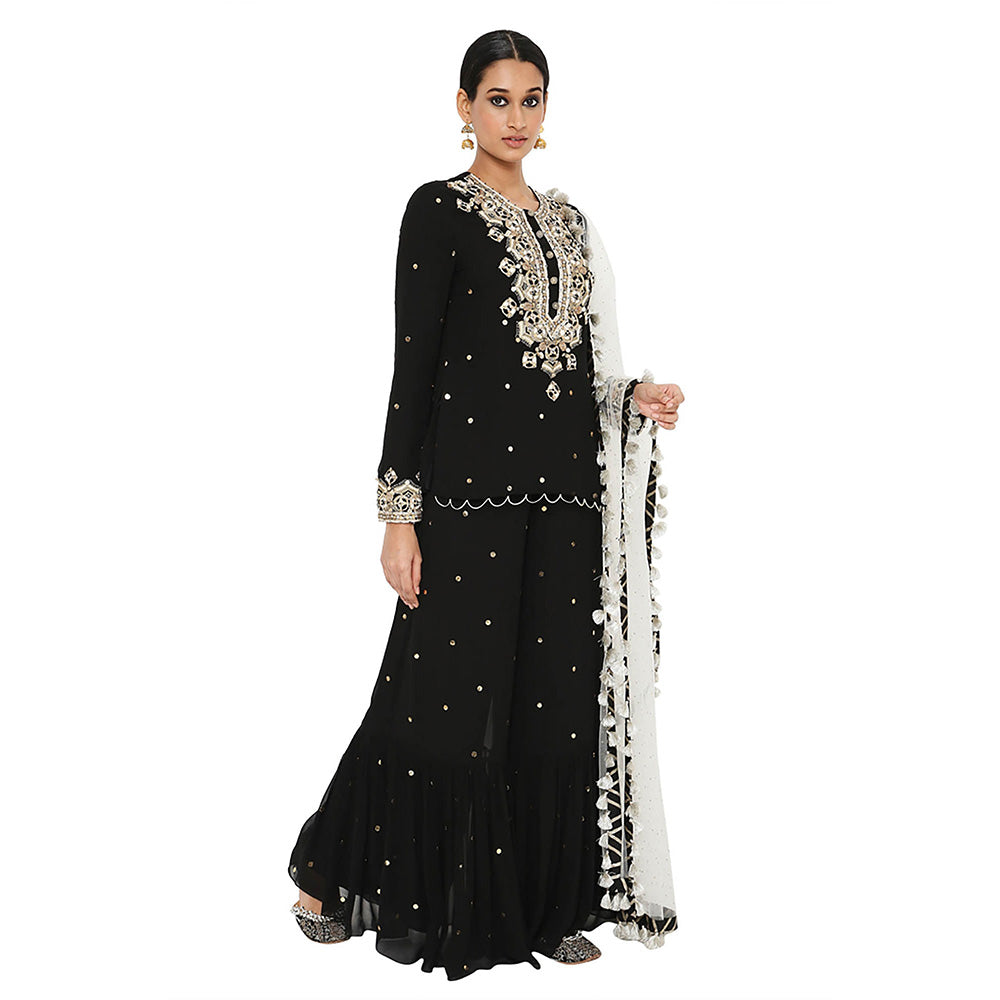 Black Mukaish Short Kurta with Sharara and Dupatta (Set of 3)