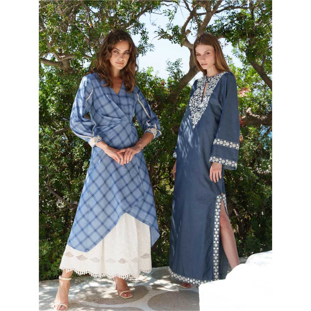 Description : Elevate your style with this blue blue chambray embroidered kaftan from Pinnacle By Shruti Sancheti. Made from high-quality chambray, this piece features full sleeves and a keyhole neck. Style it with minimal jewellery and sandals to complete the ensemble.