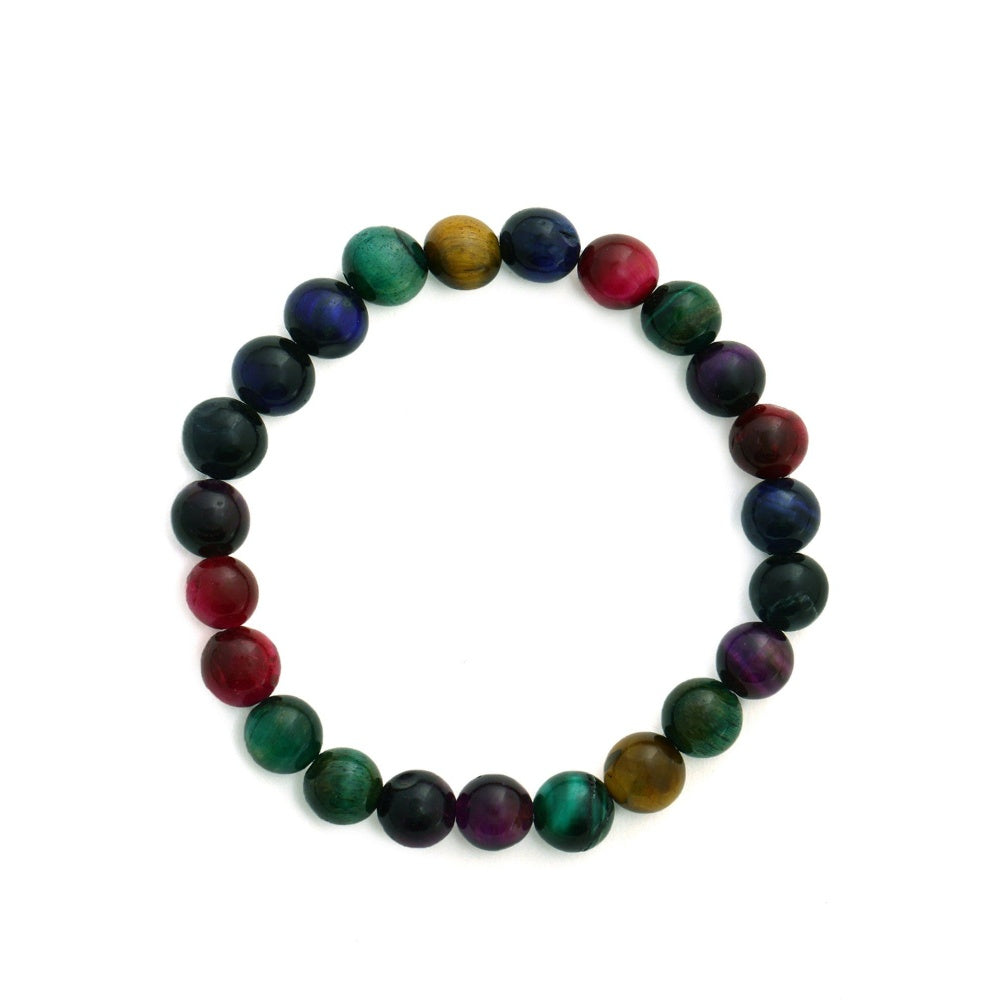 description : Add a splash of color to your look with Ruby Raang's s Red Carnelian, Lapis Lazuli, Amethyst and Green Avanturine Multicoloured Crystal Beads Bracelet. Featuring an array of shimmering crystal beads in vibrant shades, this bracelet captures light beautifully to create a dazzling effect. The elastic band provides a secure and comfortable fit, making it ideal for everyday wear or special occasions. Its versatile design complements both casual and elegant outfits, adding a lively burst of energy and charm. Style tip: Match with neutral tones or simple jewellery to highlight the bracelet s radiant colours.