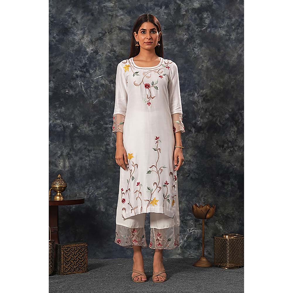 Sarla - Ivory Kurta with Palazzo and Dupatta (Set of 3)