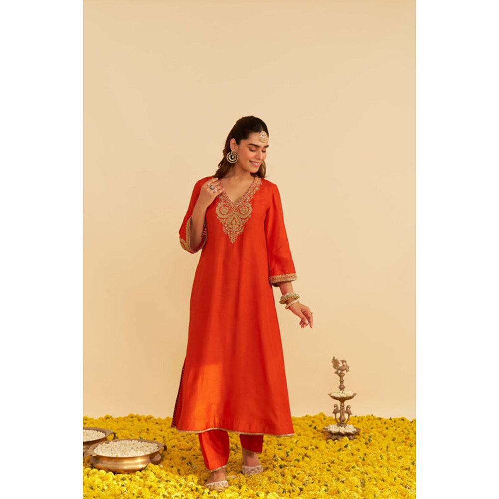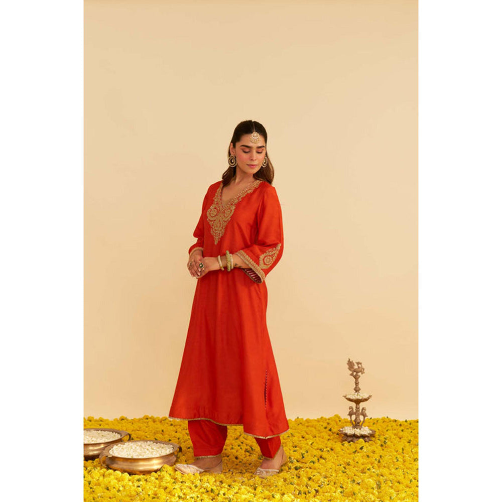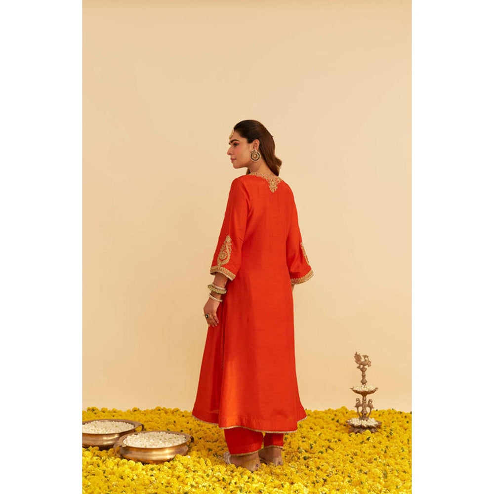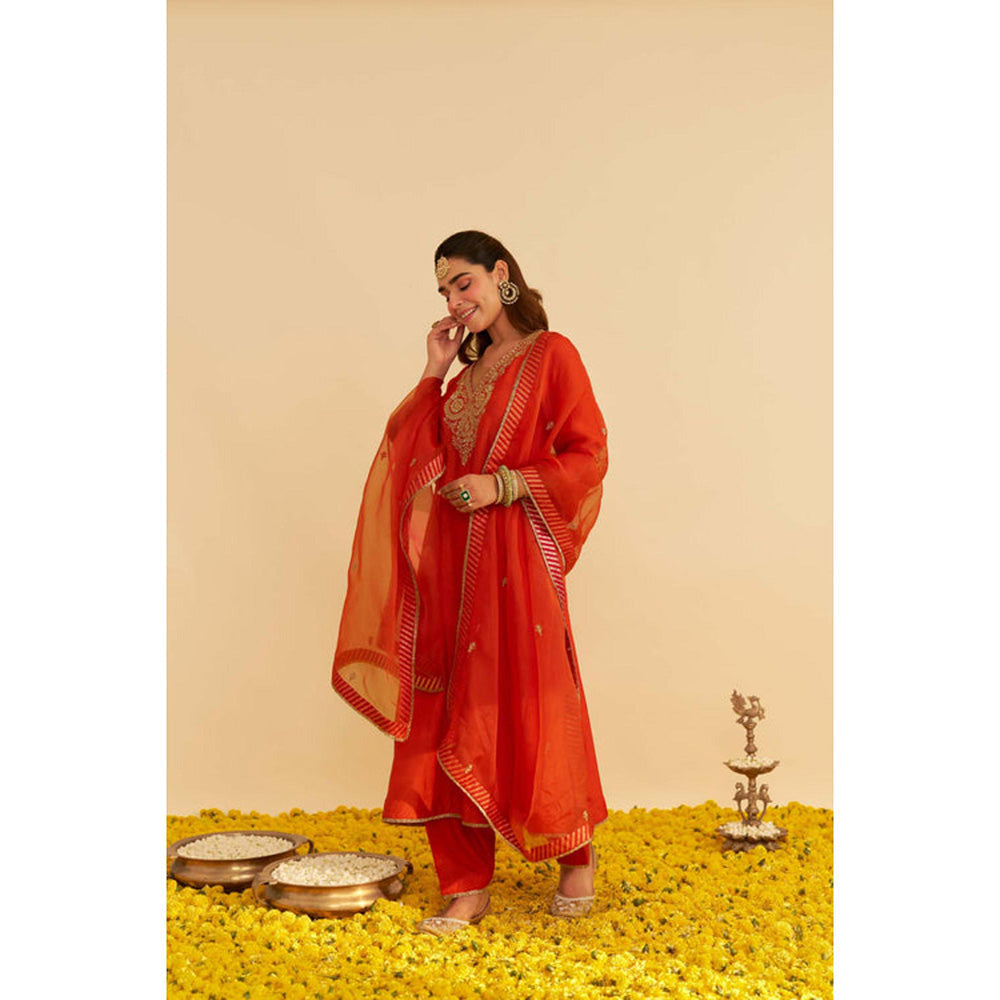 Description : Sheetal Batra Haayat - Burnt Orange Long Kaftan With Salwar And Dupatta