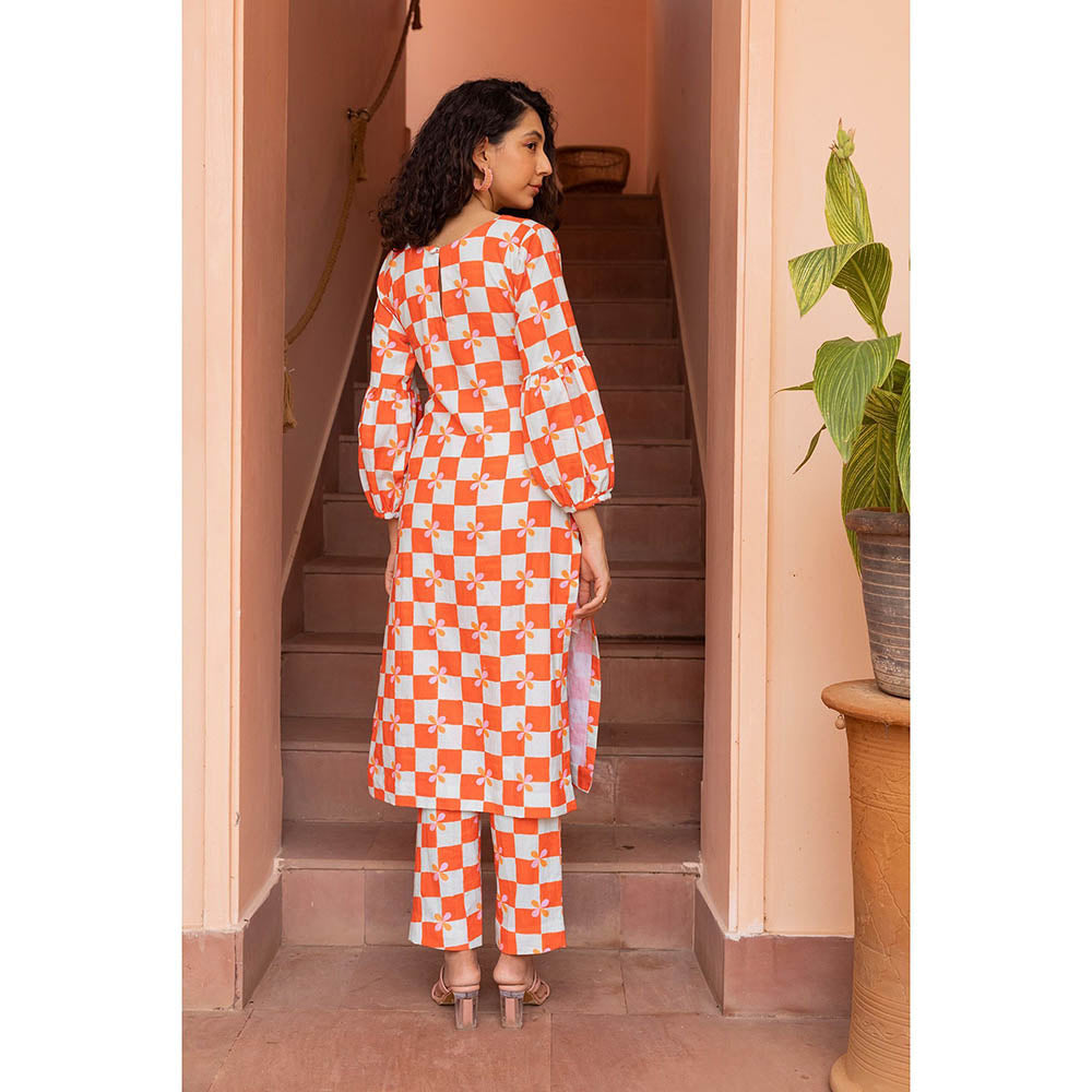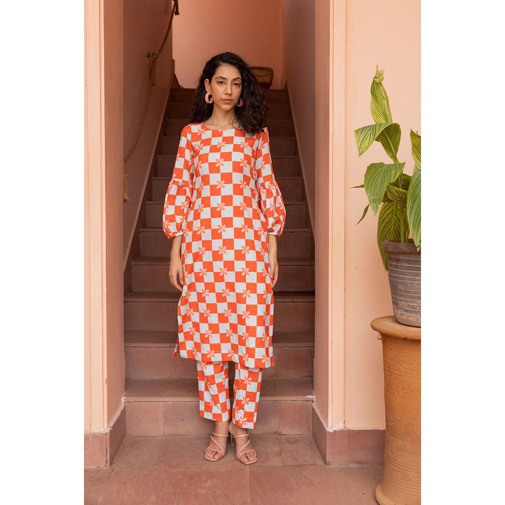 Shibui Bloom Peach Checks Kurta and Pant (Set of 2)